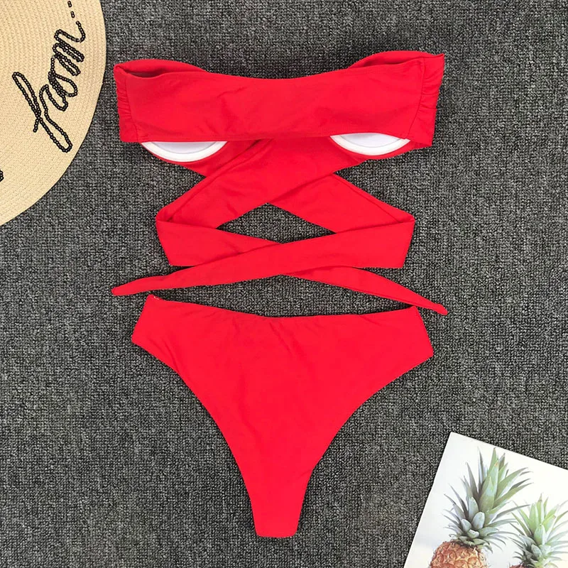 Get this Two Kinds Of Wearing Bikini Red Swimsuit Cross Bandage Swimwear Women High Waist Bathing Suit Bow Knot Beach Wear 2020 New with limited time discount by pressing the button below