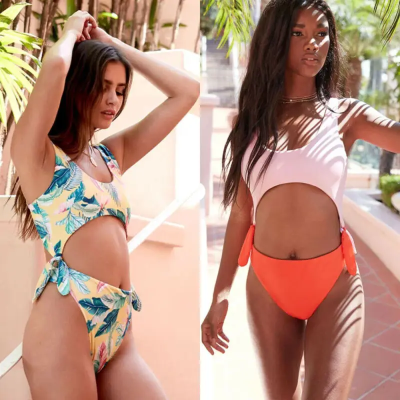 Promo US Fashion Women Floral Patch Color Print Style One Piece Bikini Push Up Padded Bra Summer Swimsuit Bathing Suit Beachwear S-XL